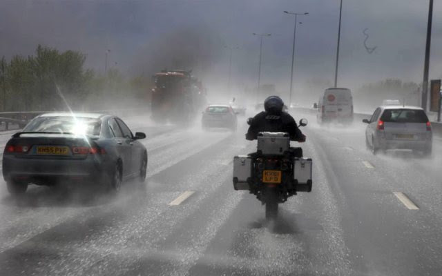 - Η ορατότητα του μοτοσυκλετιστή μειώνεται, είτε γιατί η ζελατίνα θολώνει από μέσα, είτε γιατί ψεκάζεται εξωτερικά από το σπρέι «λάσπης» που σηκώνουν τα άλλα οχήματα.